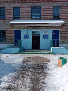 Вход в здание не оборудован пандусом, нет кнопки вызова персонала, ступени выделены контрастным цветом, на дверях имеется знак безопасности «Желтый круг для слабовидящих».